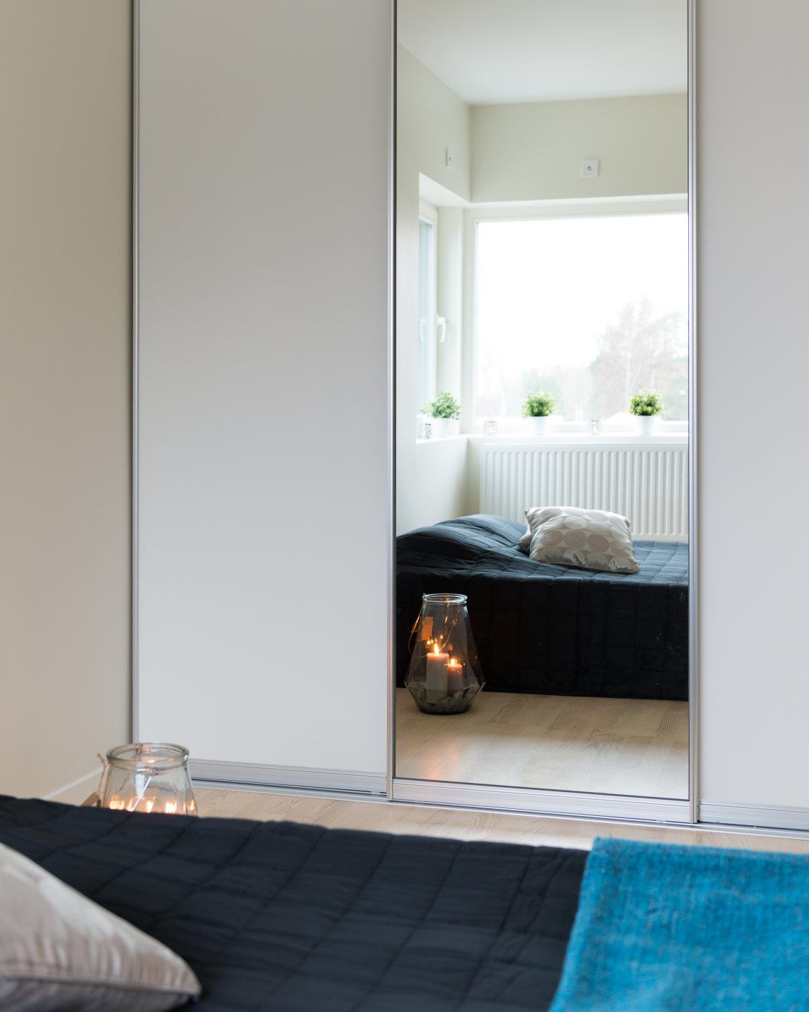 Ö: Sovrum 1: Inbyggda garderober, skjutdörrar med spegel