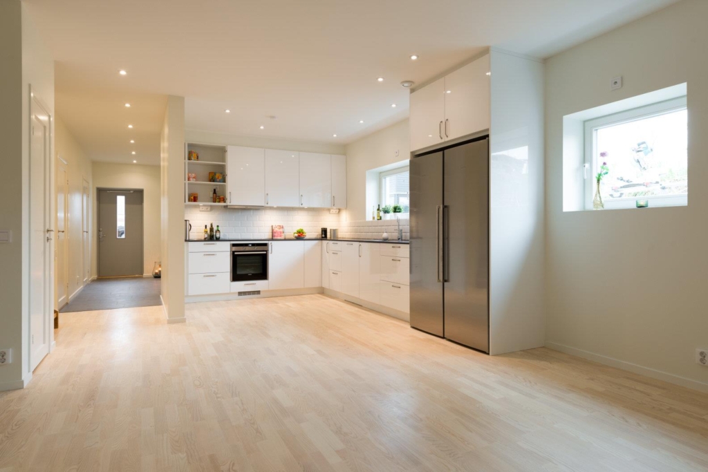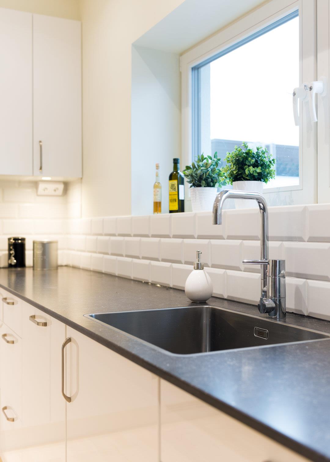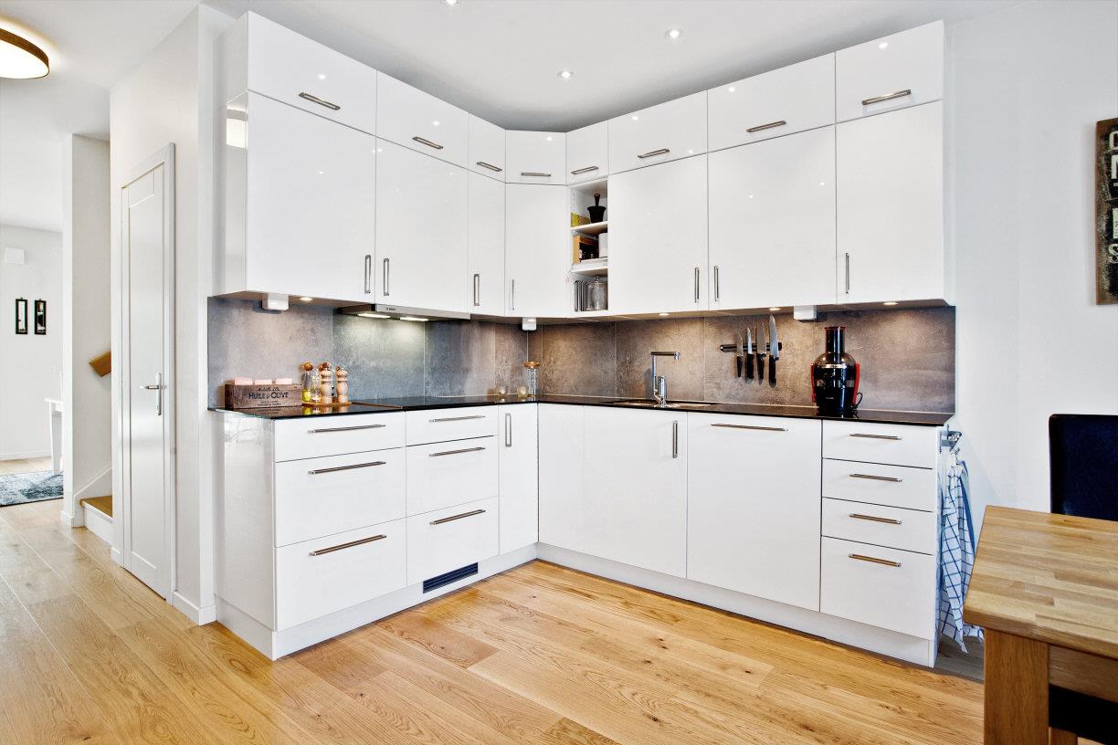Vitvaror: Kyl, frys, spishäll (induktion), micro, ugn, köksfläkt, diskmaskin.
