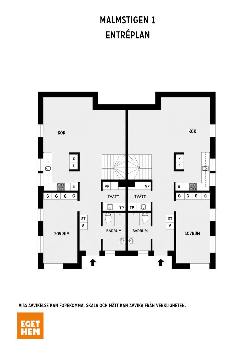 1 garderob och 1 städskåp (2-planshusen)