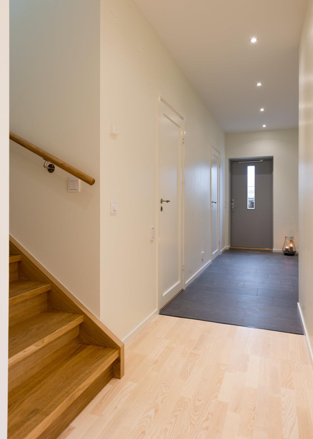 Ö: Belysning: 4 spotlights i taket. Kapphängare. 1 garderob och 1 städskåp (souterränghusen)
