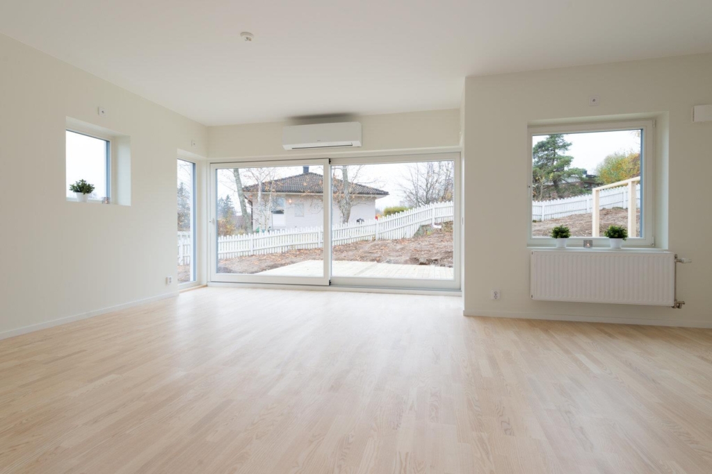 Skjutbart fönsterparti mot uteplats