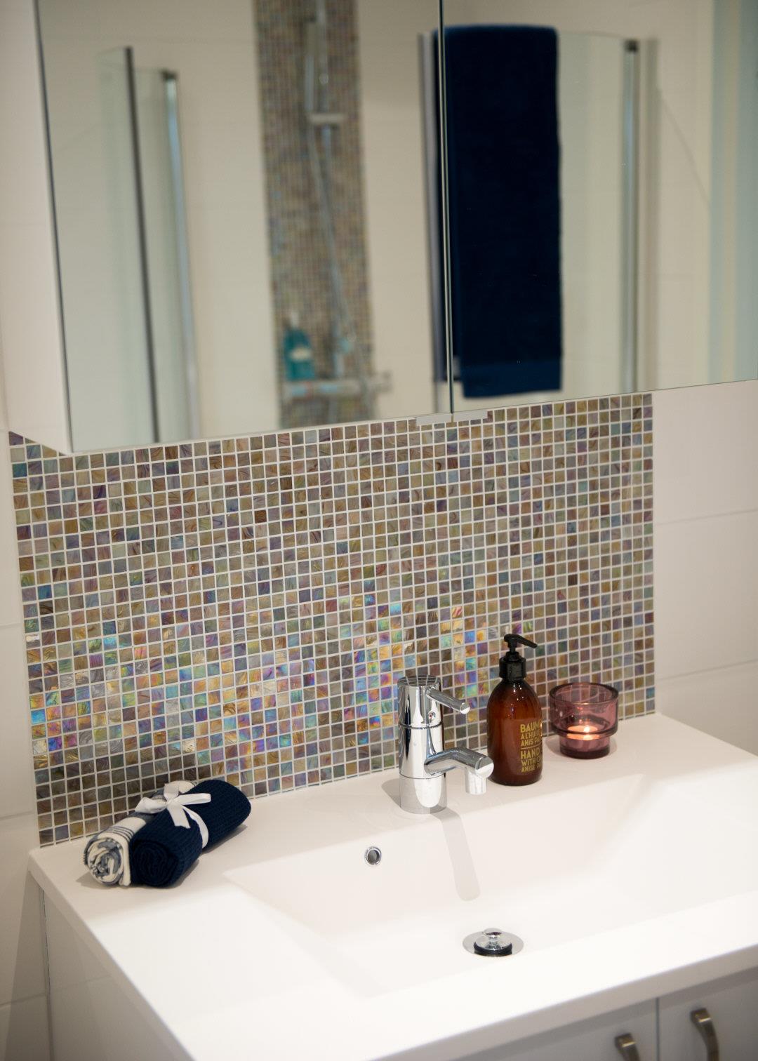 Badrumsmöbel och handfat från Kvik med lucka Bianco
