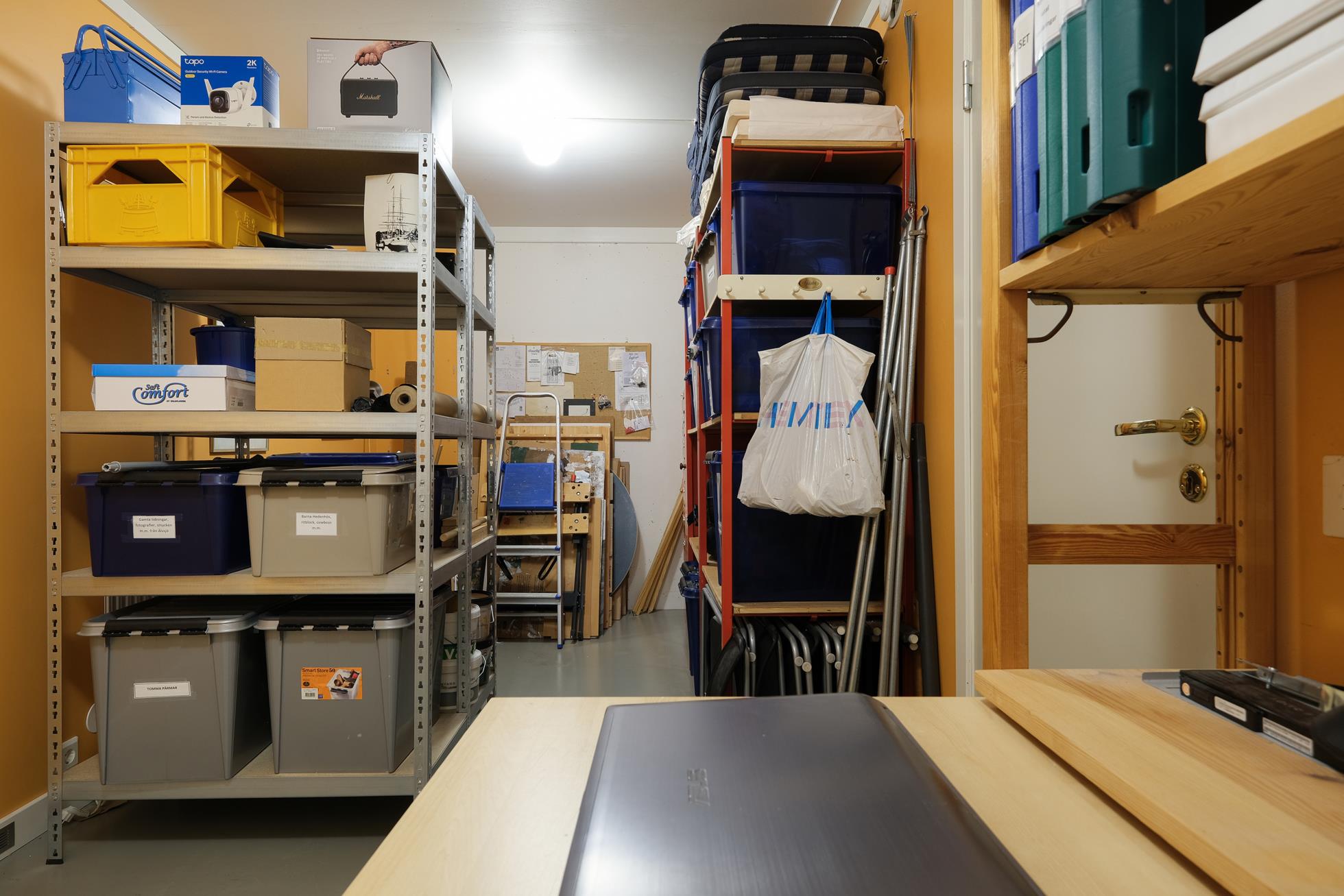 Fast bilplats i garageområde bakom fjärrstyrda elportar. Det går att installera laxbox i garaget..